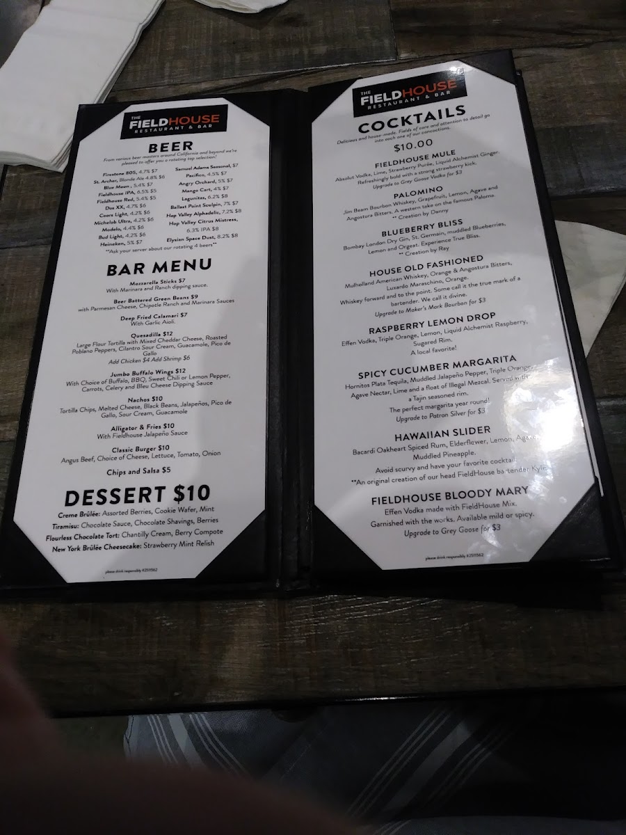 Entrees like the roasted lemon butter herb chicken and succulent ribs showcase the kitchen's commitment to quality and flavor, while presentations are truly remarkable. Whether for family dinners or special events, The FieldHouse is a must-visit for a memorable dining experience filled with culinary excellence.